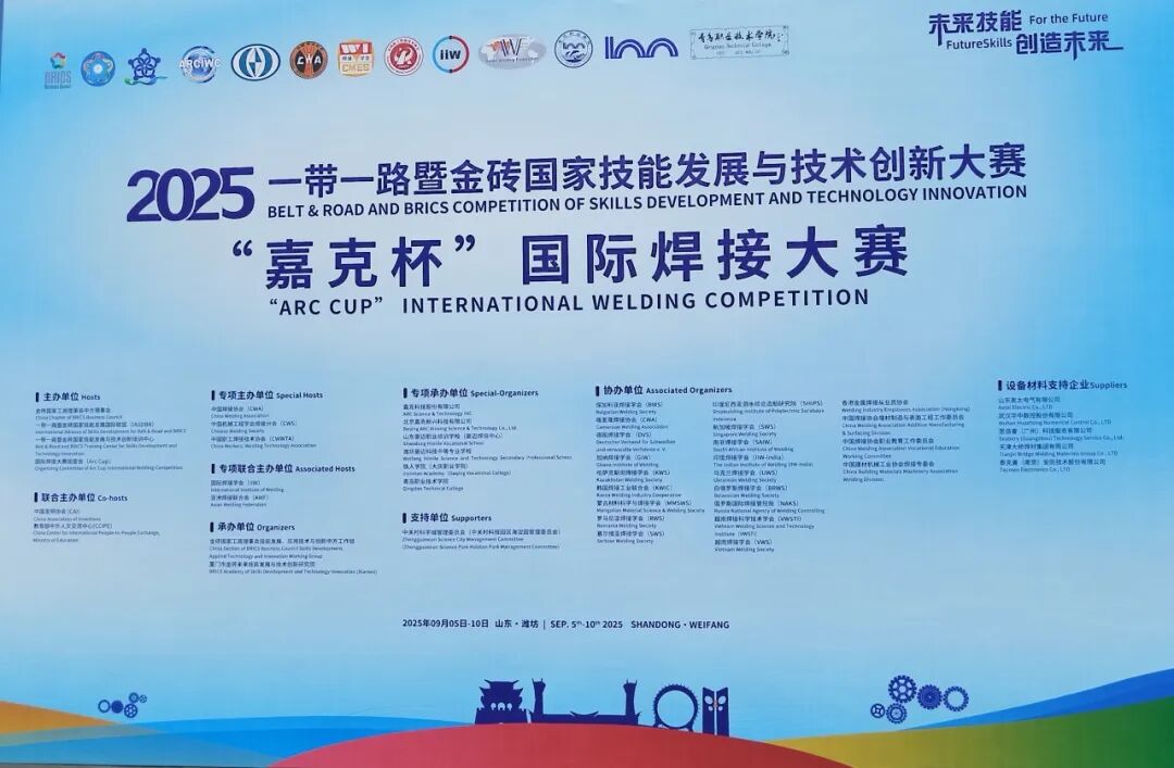 9月5日至10日,2025一带一路暨金砖国家技能发展与技术创新大赛之"嘉克杯"国际焊接大赛在山东潍坊成功举办。本次大赛汇聚了来自中国、南非、印度、加纳、塞内加尔、蒙古、乌克兰、吉尔吉斯坦等国家和地区的300余名焊接高手同台竞技,上演了一场跨越国界的高水平"技能世界杯"。